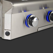 Premium Nighttime Experience: Features button-activated interior halogen lights and sleek back-lit control knobs (requires 120V AC power), providing both a modern aesthetic and functional visibility for evening grilling.