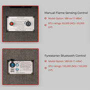 • Versatile Ignition Options: Standard operation uses a battery-powered push-button spark ignition with a flame-sensing safety valve. It is upgradeable to the FyreStarter Bluetooth system for remote smartphone control.